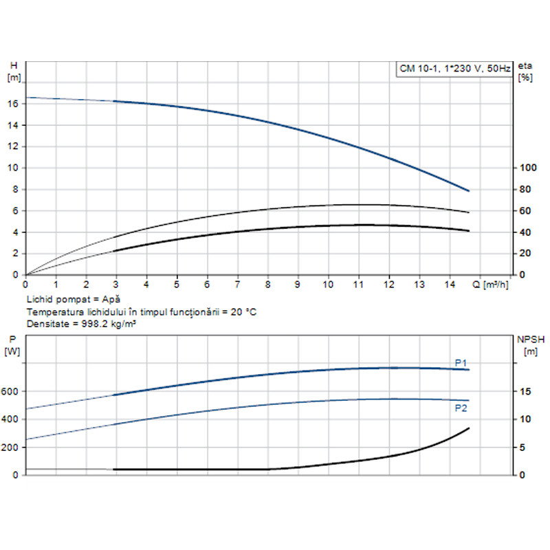 POMPA APA CENTRIFUGA MULTIETAJATA GRUNDFOS CM 10-1 220V 97516576 - FIsa tehnica