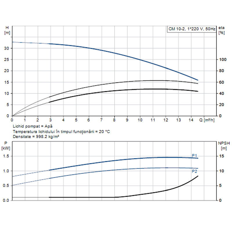 POMPA APA CENTRIFUGA MULTIETAJATA GRUNDFOS CM 10-2 220V 96943344 - Fisa tehnica