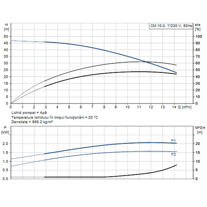 POMPA APA CENTRIFUGA MULTIETAJATA GRUNDFOS CM 10-3 220V 97516578 - Fisa tehnica