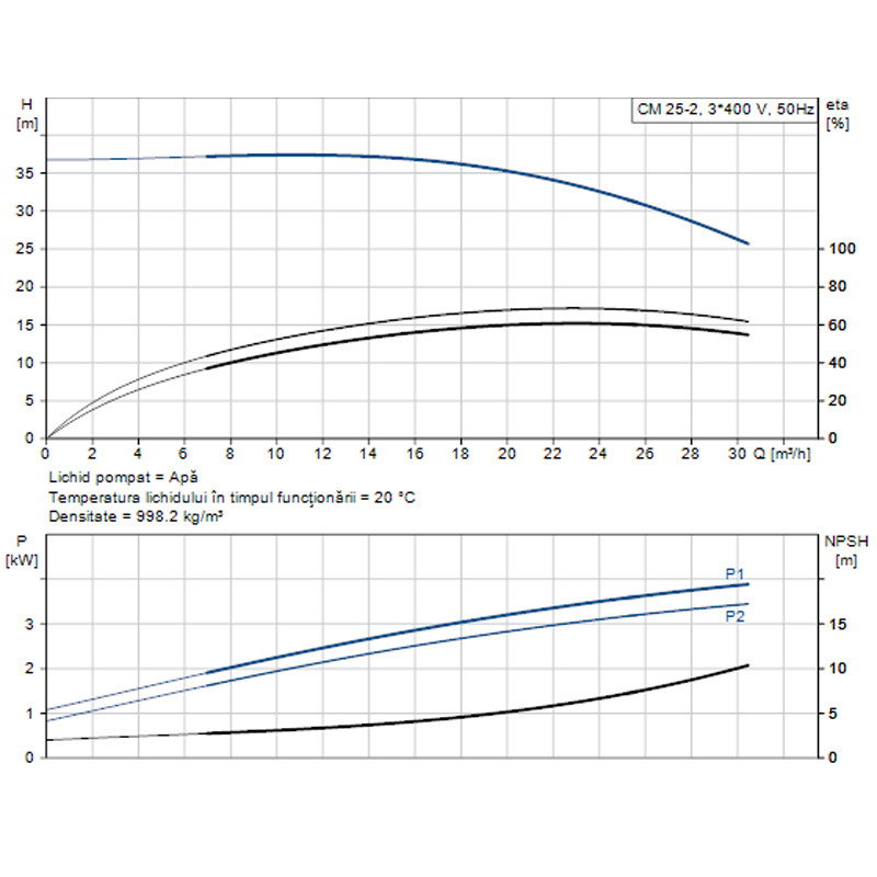 POMPA APA CENTRIFUGA MULTIETAJATA GRUNDFOS CM 25-2 380V 98979368 - Fisa tehnica
