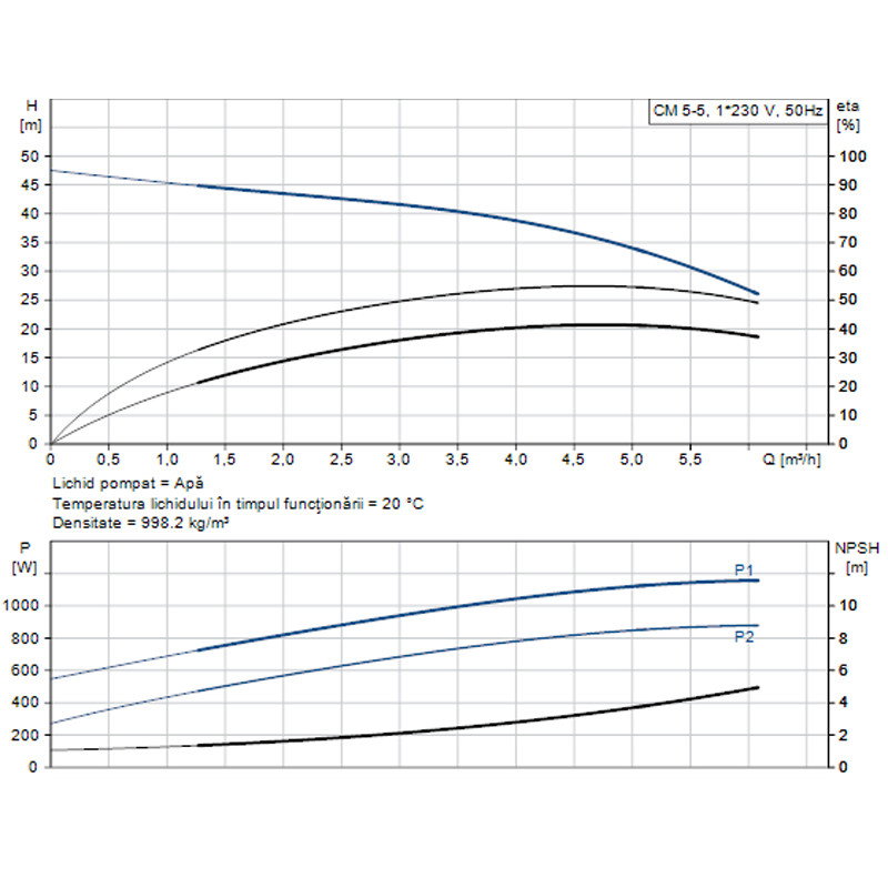 - Viteza pompei pe care se bazeaza datele pompei: 2900 rpm