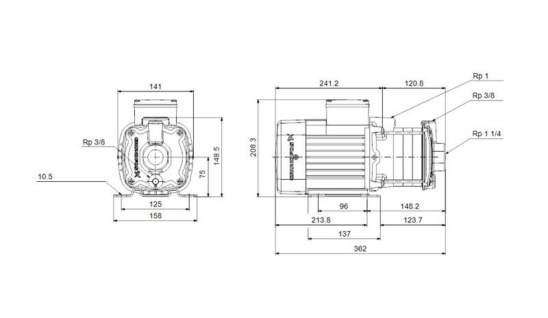 Cuplajul conductelor se realizeaza prin flanse cu fileturi de conducta Whitworth interne, Rp (ISO 7/1).