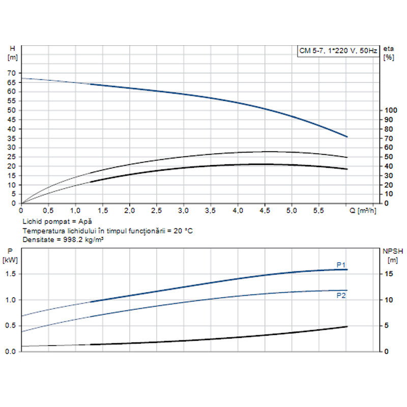 POMPA APA CENTRIFUGA MULTIETAJATA GRUNDFOS CM 5-7 220V 97516573 - FIsa tehnica