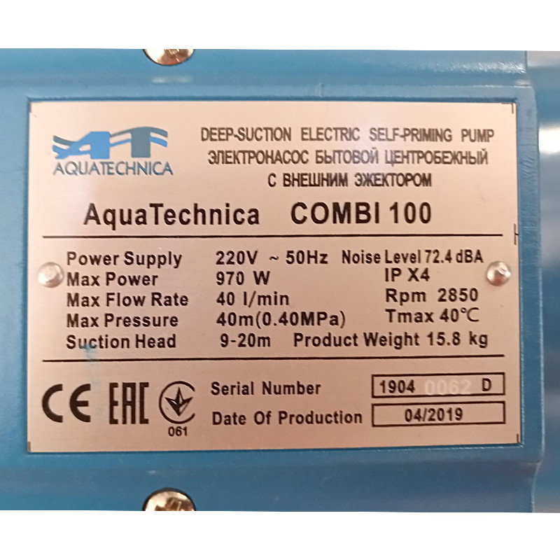 AquaTechnica Pompa autoamorsanta COMBI 100/PCOMBI cu ejector
