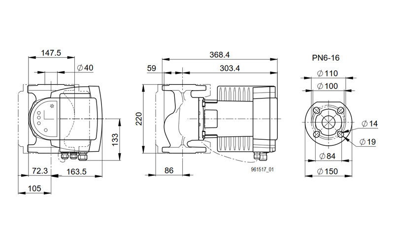 POMPA CIRCULATIE ELECTRONICA BIRAL MODULA 40-10 220 RED PN6-16 DN 40 220MM 230V ROTOR UMED PENTRU INSTALATII INCALZIRE - Fisa de produs