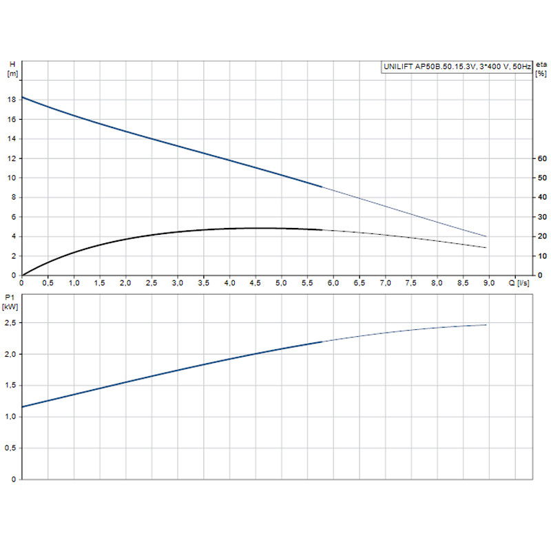 UNILIFT AP50B este o pompa submersibila din otel inoxidabil proiectata pentru pomparea apelor uzate cu particule de pana la 50 mm. Aceasta poate fi instalata pe un cuplaj automat, permitand efectuarea usoara a activitatilor cu scop de intretinere si cu alte scopuri.
