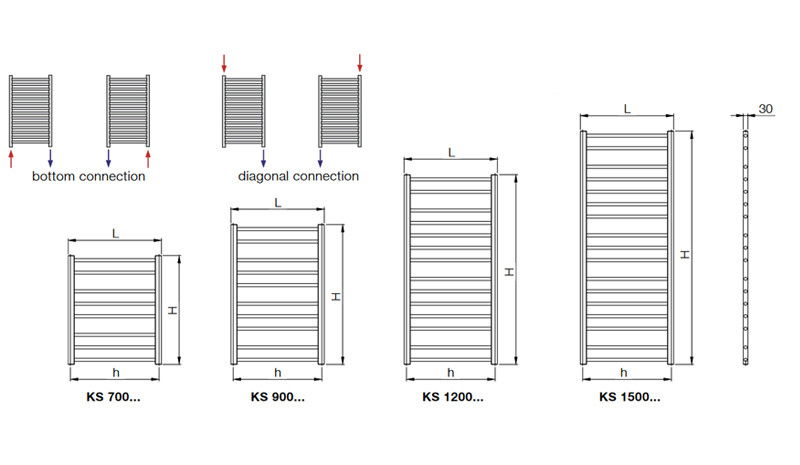 Radiatoarele suport pentru prosoape KORALUX STANDARD sunt produse din profile de otel inchise cu o sectiune transversala in forma de D si profile drepte cu o sectiune transversala circulara. Pasul de conectare este derivat din lungimea radiatorului. Radiatoarele sunt livrate cu un set pentru montarea pe perete, care include o gura de aerisire si dopuri de obturare. In aceasta gama veti gasi cele mai mici radiatoare suport pentru prosoape de pe piata. Cu o latime de 400 mm, acestea sunt ideale pentru utilizarea in bai mici sau ca sursa alternativa de caldura potrivita pentru combinarea cu un alt tip de incalzire, de exemplu, incalzirea prin pardoseala. Veti aprecia prezenta acestui radiator in baie, toaleta si alte spatii mici.