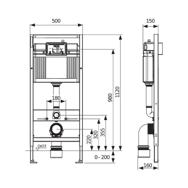 - Modul de WC pentru montaj monobloc, in fata unui perete solid sau pentru integrarea in pereti cu structuri portante de metal sau lemn