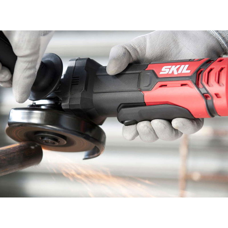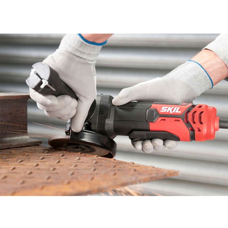 SKIL 9130 este un polizorul unghiular eficient compatibil cu discurile de 115 mm. Datorita motorului puternic de 720 W, aceasta unealta asigura pentru obtinerea celor mai bune taieri, polizari si indepartari a ruginii. Acest polizor unghiular are un comutator cu parghie convenabil care ofera un control optim. Necesita o forta de operare extrem de scazuta si unealta se opreste imediat dupa eliberarea comutatorului. Un sistem „Clic” va permite sa ajustati usor aparatoarea, fara cheie, astfel ca puteti devia scanteile in orice directie dorita. Datorita suportului de cheie integrat din manerul lateral, aveti intotdeauna la indemana o cheie pentru schimbarea usoara a accesoriilor. Iar in functie de sarcina de executat, puteti ajusta cu usurinta manerul lateral in trei pozitii comode diferite. Acesta unealta dispune de rulmenti etansati la praf si roti dintate elicoidale care asigura un cuplu mai mare, o durata de viata mai lunga si un nivel de zgomot mai scazut in timpul lucrului. Carcasa metalica zvelta si durabila a angrenajului va permite sa manevrati acest polizor unghiular cu usurinta, chiar si atunci cand lucrati in spatii inguste. Schimbarea sau inlocuirea discurilor este usoara, datorita sistemului convenabil de blocare a axului.