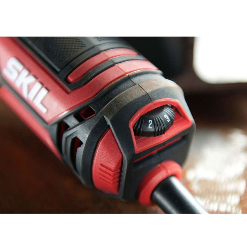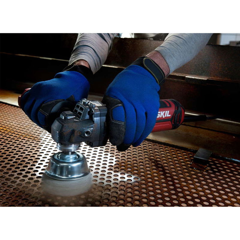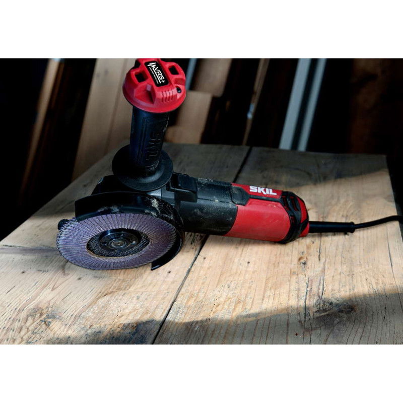 SKIL Masters 9151 este un polizorul unghiular durabil compatibil cu discurile de 125 mm. Datorita motorului puternic de 1010 W, aceasta unealta asigura pentru obtinerea celor mai bune taieri, polizari si indepartari a ruginii. O inovatie superba este „VRS+” SKIL, un sistem superior de reducere a vibratiilor, in comparatie cu sistemele traditionale. O contragreutate care se poate deplasa in toate directiile este construita in manerul lateral al acestui polizor unghiular. Acest asa numit absorber dinamic reduce vibratiile in mod extraordinar. In functie de sarcina de executat, puteti ajusta cu usurinta manerul lateral in trei pozitii confortabile diferite. Aceasta unealta are o functie de pornire lina care regleaza automat viteza iar comenzile electronice de putere constanta asigura eficienta si la sarcini mai mari. Un sistem „Clic” va permite sa ajustati usor aparatoarea, fara cheie, astfel ca puteti devia scanteile in orice directie dorita. Pentru a intari performantele sale extraordinare, acesta unealta dispune de roti dintate elicoidale calite care asigura un cuplu mai mare, o durata de viata mai lunga si un nivel de zgomot mai scazut in timpul lucrului. Schimbarea sau inlocuirea discurilor este usoara, datorita sistemului convenabil de blocare a axului. SKIL 9151 GB este furnizat intr-o geanta robusta, impreuna cu trei discuri de polizare.