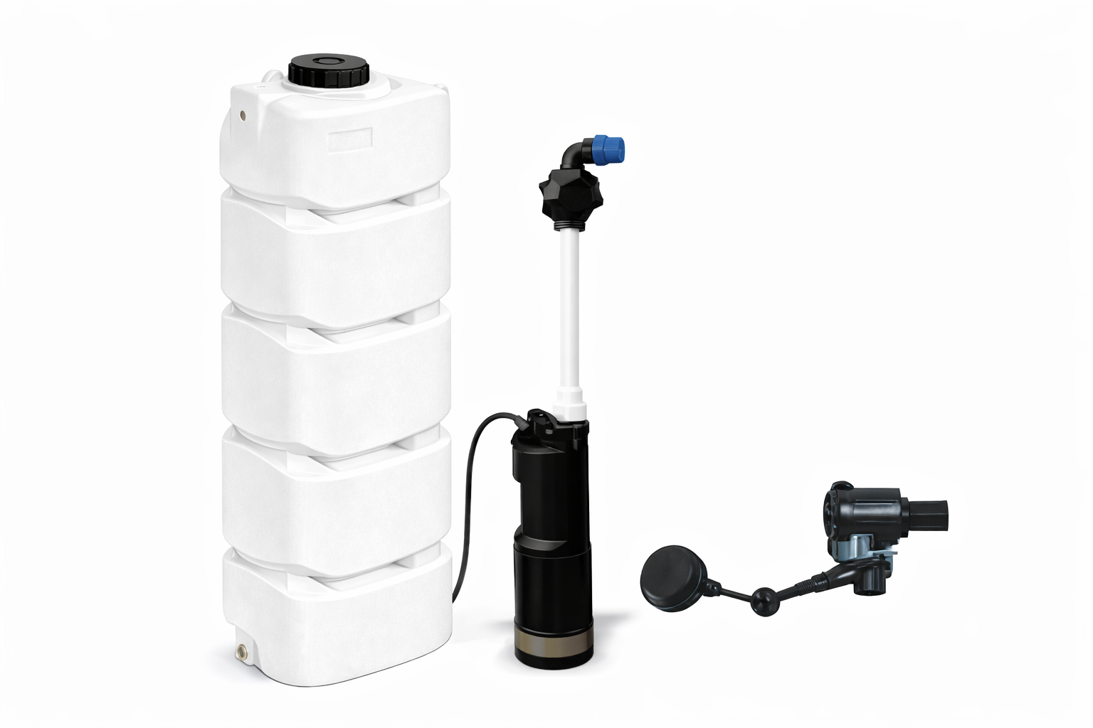 Este un sistem complet pentru alimentarea cu apă a locuinței, care include rezervor de aproximativ 500 litri și pompă automată, asigurând presiune constantă și rezervă de apă.