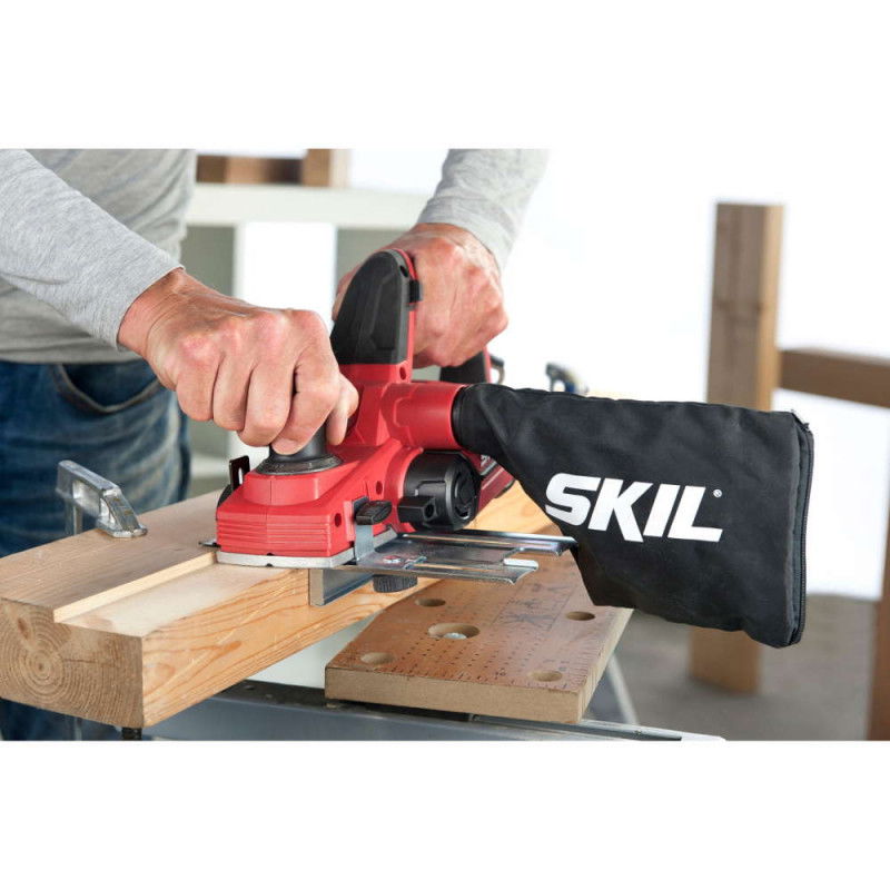 Pentru mentinerea curateniei locului de munca, puteti conecta sacul pentru praf sau un aspirator casnic standard, la ambele fete al rindelei. Piciorul de sprijin protejeaza piese prelucrata impotriva avarierii accidentale, cand asezati unealta pe piesa sau cand o puneti deoparte, dupa terminarea lucrarii. SKIL 1590 AA se livreaza intr-o geanta robusta, impreuna cu o geanta pentru praf, un ghidaj paralel si un mecanism pentru reglajul adancimii de faltuire.