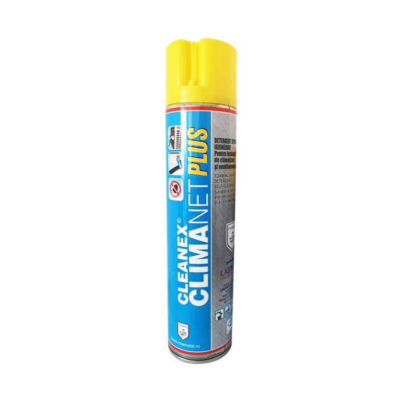 Cleanex Climanet Plus - Spray detergent spumogen profesional pentru curatarea radiatoarelor lamelare ale aparatelor de aer conditionat sau altor echipamente. Are o actiune deosebit de eficienta care permite eliminarea rapida si fara efort a depunerilor de praf si mizeria de natura organica (musculite etc).