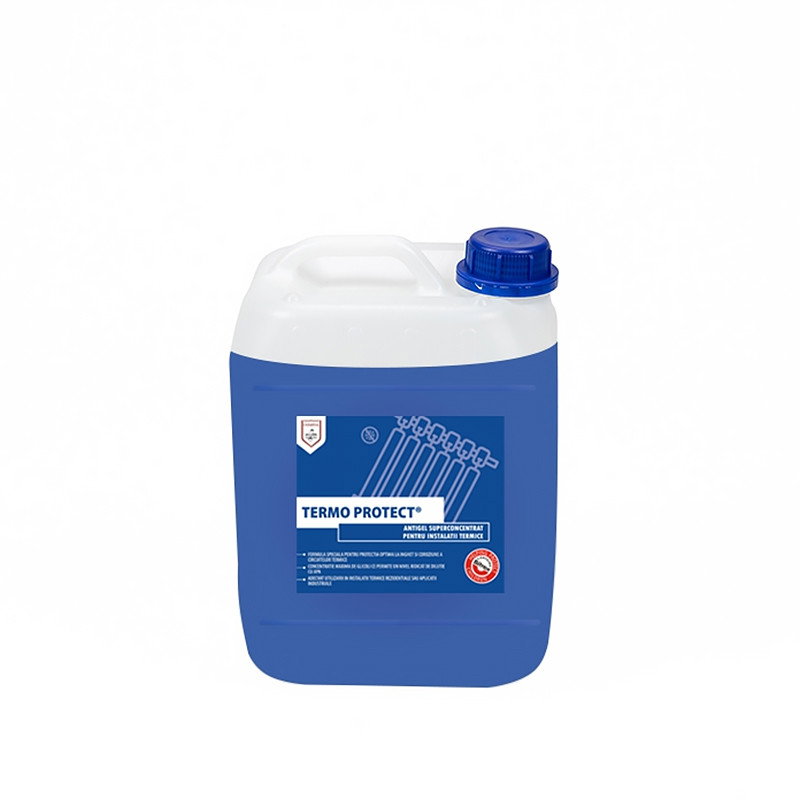 TERMO PROTECT este un antigel superconcentrat pe baza de monoetilenglicol ce asigura protectia crescuta la inghet a circuitelor termice. Produsul este adecvat utilizarii in orice instalatie de incalzire care functioneaza la temperatura maxima de 102 °C, permitand un raport crescut de dilutie cu apa, in functie de regimul de exploatare dorit.