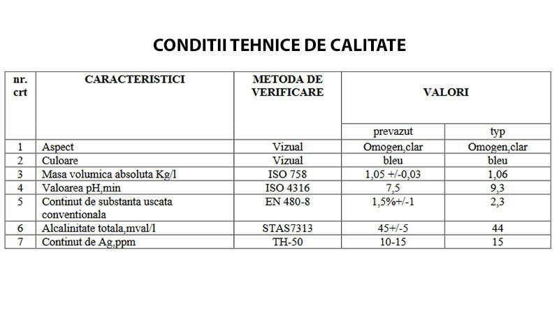Produsul contine argint coloidal si asigura eliminarea mizeriei prin curatarea filtrelor, vaporizatoarelor si condensatoarelor, conducand la cresterea randamentului si scaderea semnificativa a consumului de energie electrica.