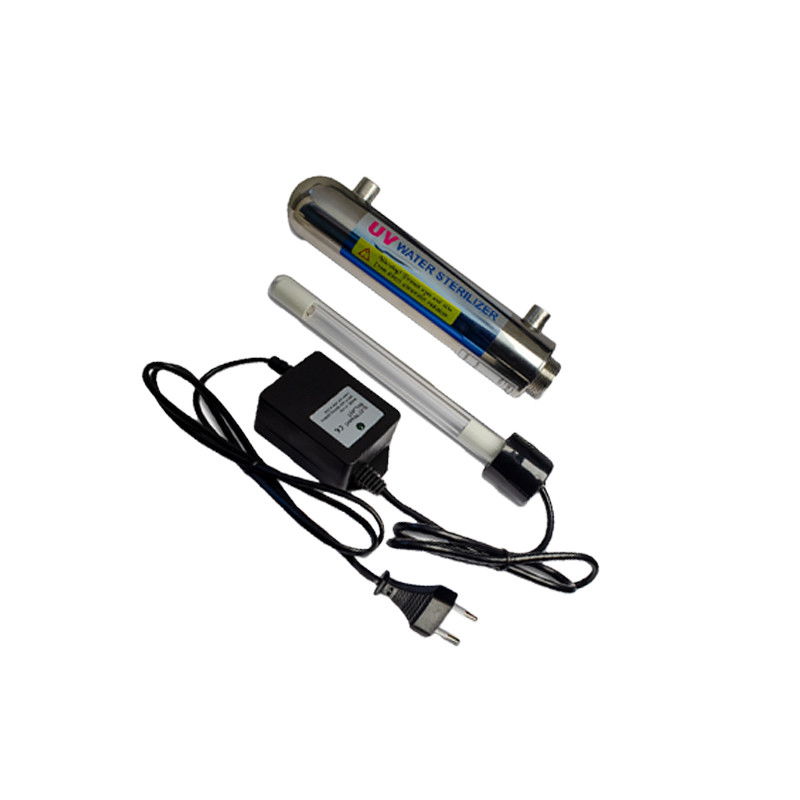 Sterilizator destinat sistemelor de osmoza inversa, echipat cu conectori de plasic pentru furtun cu diametru de 6mm. Sterilizatoarele cu lampi UV sunt special construite pentru a elimina din apa bacteriile, virusurile, algele si fungii, prin iradierea apei cu raze ultraviolete. Apa rezultata este sigura din punct de vedere bacteriologic fara folosirea de substante chimice, deci in mod natural, fara a genera reziduuri.Eficienta sistemelor cu UV este strict legata de compozitia apei care trebuie sterilizata.