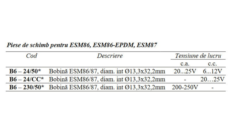 Piesa de schimb pentru seria ESM86 si ESM87