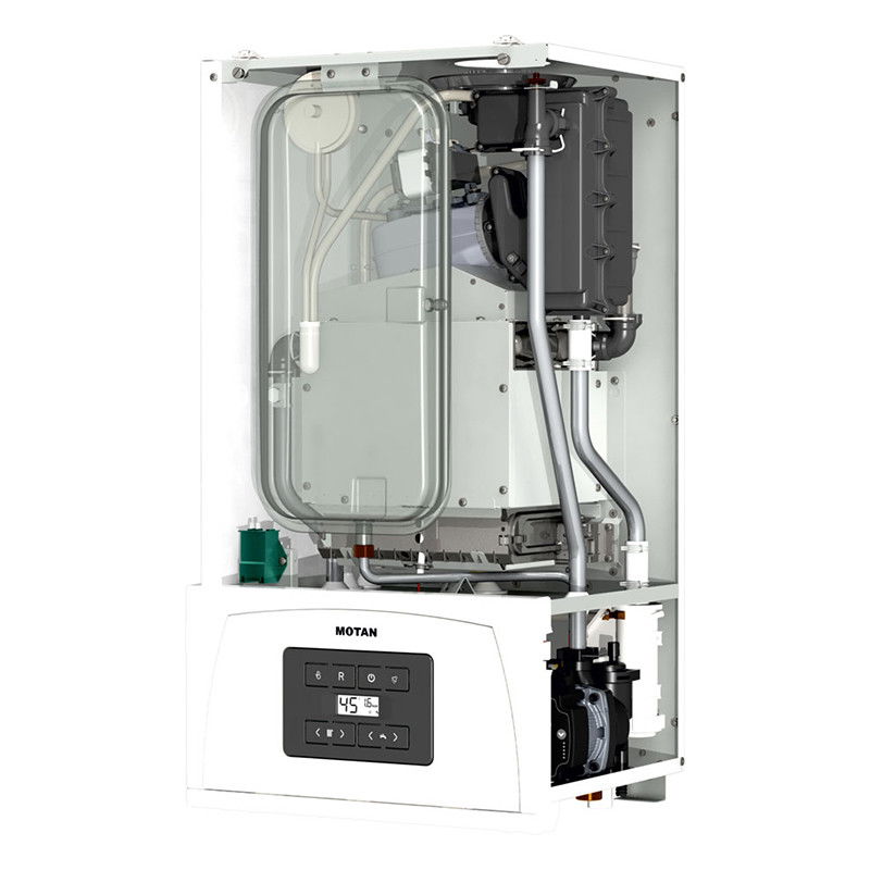 Centrala termica pe gaz, cu condensare, MOTAN CONDENS 050, 24 KW, cu KIT de evacuare destinata pentru incalzirea centrala al cladirilor cu necesar de caldura de 24 kW sau sub aceasta valoare. In acelasi timp este ideal si pentru prepararea apei calde menajere aproape pentru orice fel de gospodarie. Indiferent daca construiti o casa noua sau renovati o casa, modul in care este produsa apa calda menajera este de o importanta majora, deoarece un sistem ales necorespunzator va poate face viata mizerabila timp de multi ani. in ultimii ani, pe lânga costuri si eficienta energetica, solutiile ecologice au devenit din ce in ce mai importante. Cu alegerea centralei MOTAN CONDENS 050 o sa luati decizie buna in conformitate cu fiecare dintre criteriile mentionate.