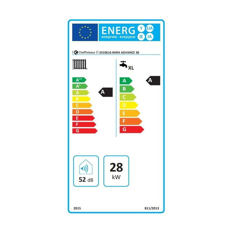 - Eficienta la 30% din Qn cu retur la 30°C Hi/Hs: 109,5 / 98,6 %
