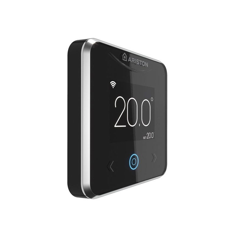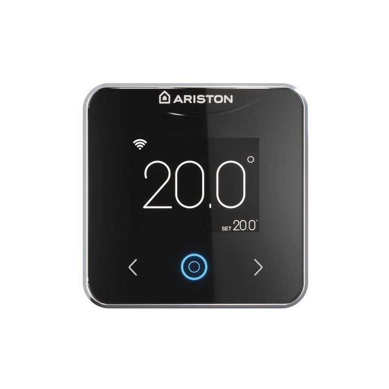 Termostatul Ariston CUBE S NET WI-FI programabil beneficiaza de un set de functii moderne, ce garanteaza o economisire a sistemului de incalzire de pana la 40%. Termostatul dispune de functia de control prin internet, ce poate fi accesata prin intermediul unei aplicatii pentru smartphone, care ajusteaza atat temperatura ambientala, cat si pe cea a apei calde menajere.
