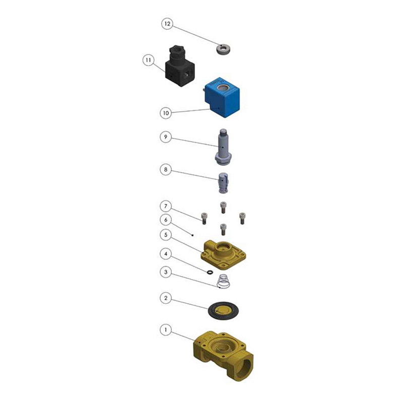 Atentie la montajul electroventilului! Nu este recomandat montajul cu bobina in jos deoarece rugina sau alte impuritati se pot depune si impiedica miscarea miezului la comanda bobinei! Asamblati electroventilul ca in figura.