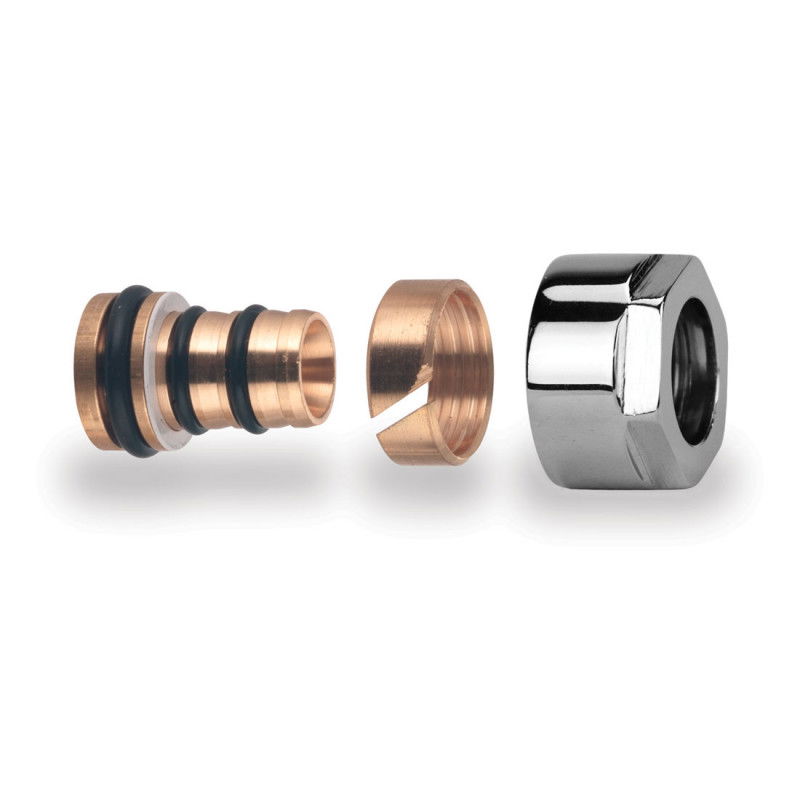 Racord eurocon compresiune pentru teava pex 16x2 mm tip (pe-xa,pe-xb,pert,pe-xc) cu filet de 1/2. Se poate adapta la distribuitoare cu filet exterior de 3/4 eurocon si la robineti de calorifer tur - retur cu filet exterior de 1/2.