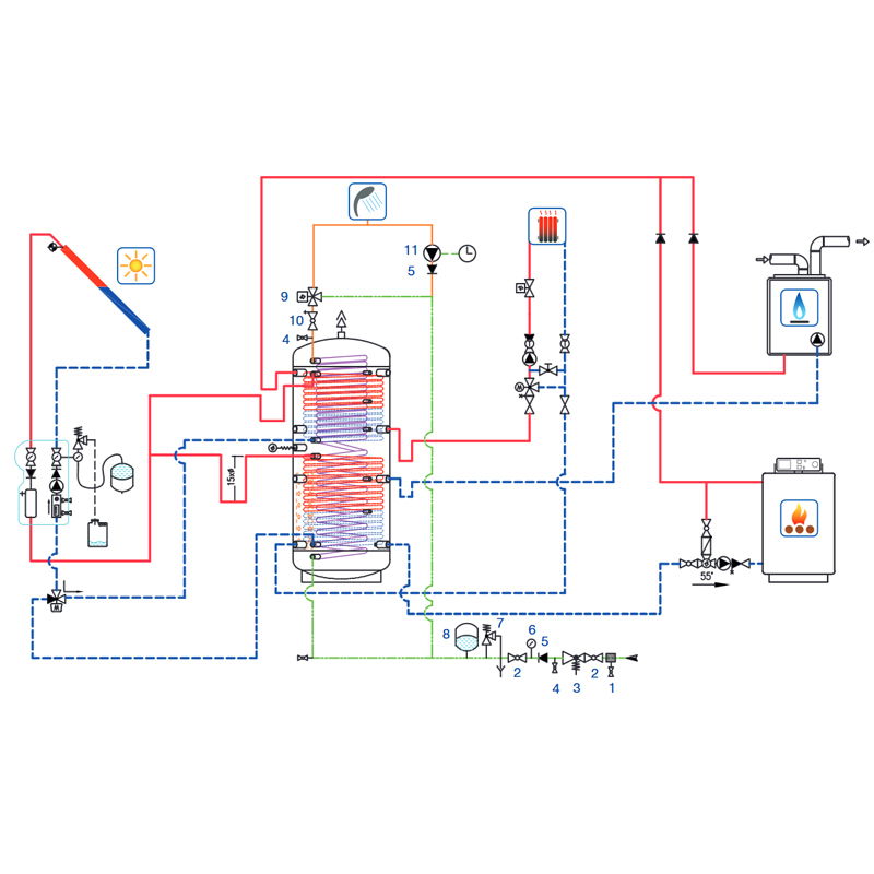 Structura sa solida se bazeaza pe un rezervor etans, care adaposteste nu doar 1, ci 2 serpentine, conferind astfel posibilitatea utilizarii a doua surse de caldura separate pentru incalzirea apei. Serpentina inferioara, in cea mai mare parte a cazurilor, este conectata la o instalatie echipata cu panouri solare, ceea ce il face o alegere ecologica si eficienta din punct de vedere energetic.