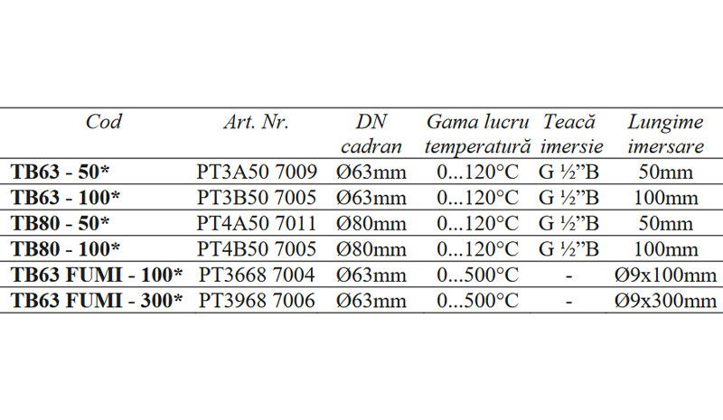 TERMOMETRU AXIAL 0-120 GRADE DN80 CU TEACA 1/2 TB80-50 FIMET - Fisa tehnica