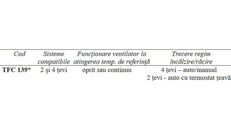 - pentru comutare centralizata regim incalzire/racire