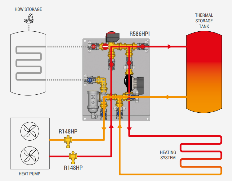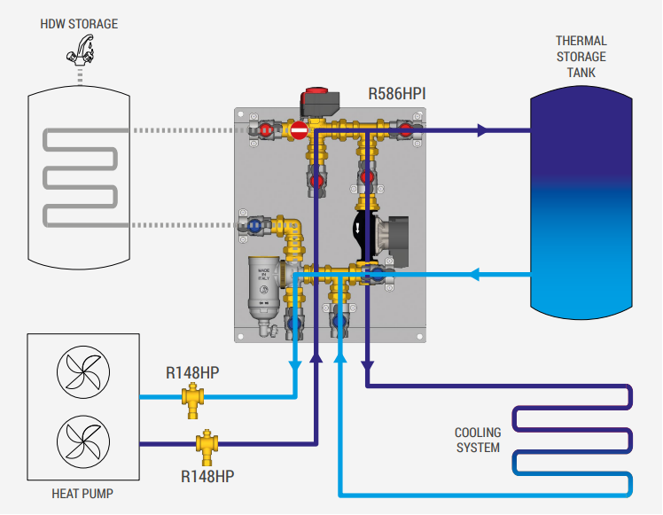 • Supapă de deviere pentru a schimba modurile de control ale ambelordepozitarea HDW și serviciile de încălzire/răcire.