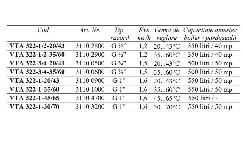 • Acuratete reglare: VTA322 si VTA323 ±2°C la un debit de 4 litri/minut