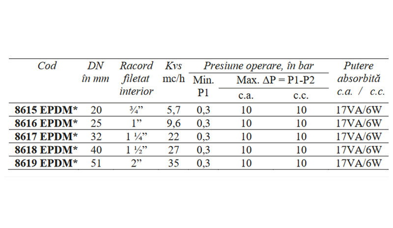 ELECTROVANA APA 1 NORMAL INCHIS 230VCA DN25 130 GRADE CEME 8616 EPDM - Fisa tehnica