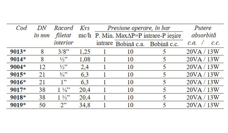 • ELECTROVENTIL ABUR 1/2 DN8 CEME ESV 9014 - Fisa tehnica