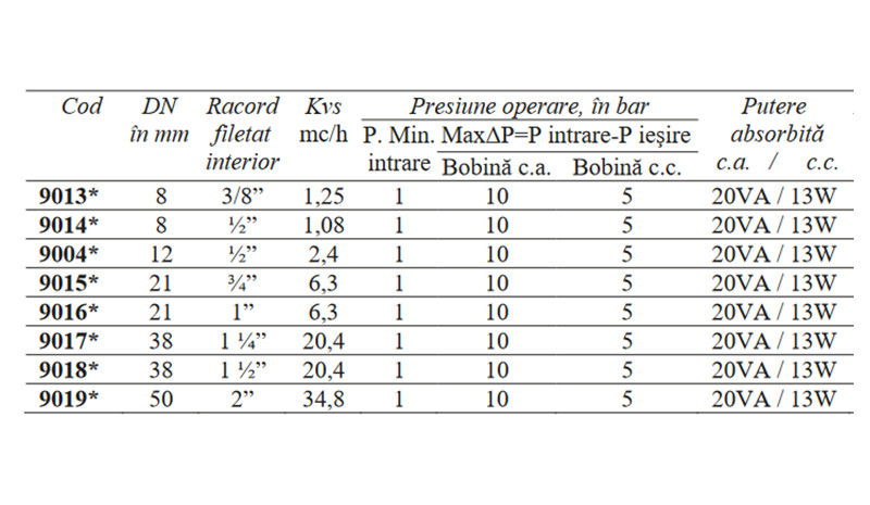 • Instalare: ventilele pot fi instalate in orice pozitie, exceptie cu bobina in jos, la modelele 9017, 9018, 9019 se recomanda instalarea verticala