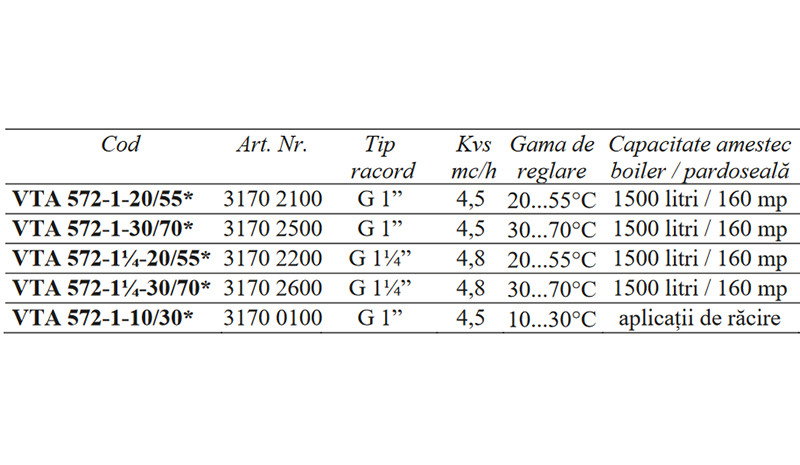 • Presiune diferentiala: 1 bar la seria VTA572 (intre porturile de apa calda si apa rece)