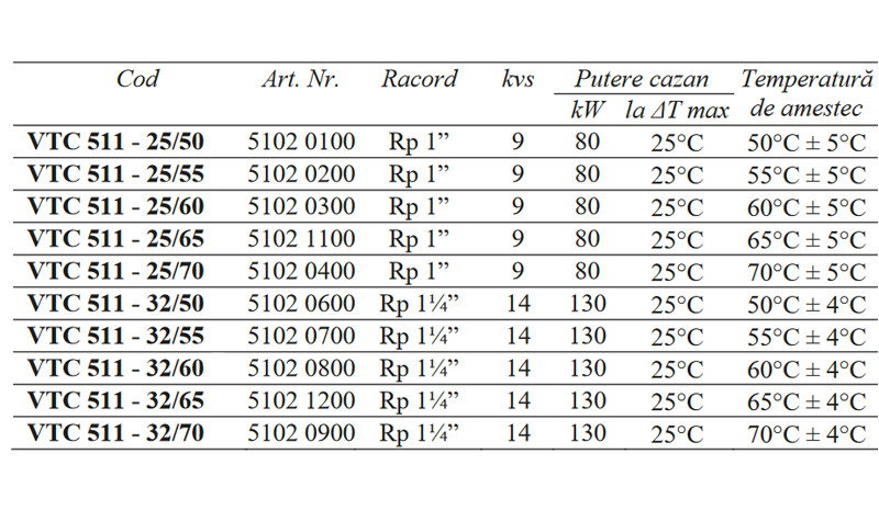 • VENTIL TERMIC DE AMESTEC 11/4 FI 32-50 VTC511-32/50 ESBE 5102 0600 - Fisa tehnica
