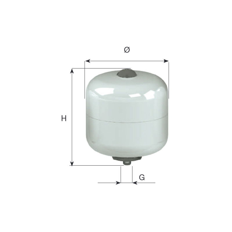 Rezervor de presiune cu membrana interschimbabila pentru circuite de apa calda si rece sanitare, sisteme de presurizare, sisteme de incalzire si circuite de refrigerare.