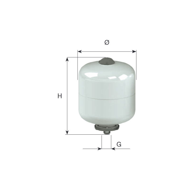 Rezervor de presiune cu membrana interschimbabila pentru circuite de apa calda si rece sanitare, sisteme de presurizare, sisteme de incalzire si circuite de refrigerare.